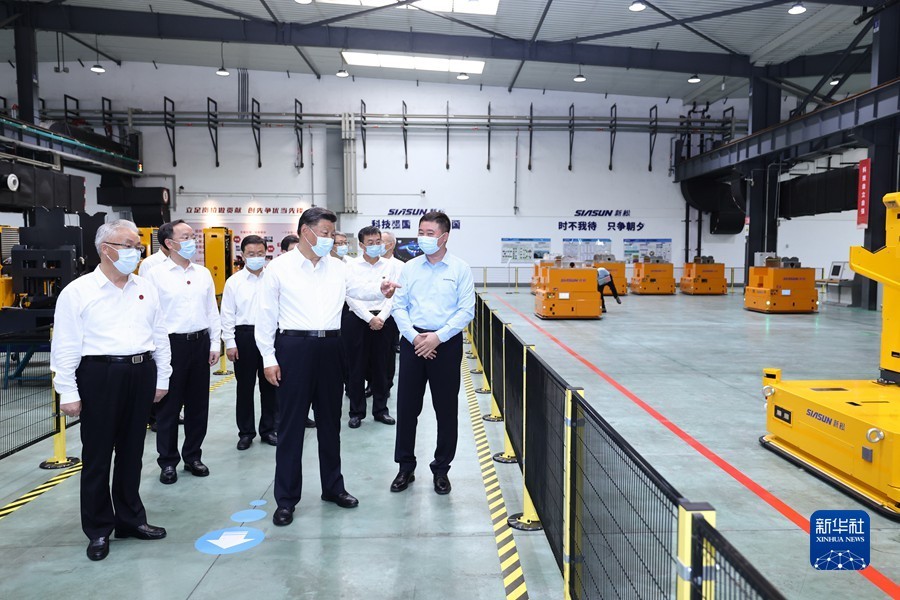 习近平17日在沈阳市考察调研。当天下午,他来到沈阳新松机器人自动化股份有限公司。在企业展厅,习近平听取辽宁新时代东北振兴整体情况介绍,察看辽宁先进科技产品集中展示,并考察了新松公司生产经营、自主创新情况。企业生产车间内,工业机器人、协作机器人、特种机器人等正在进行测试。习近平向技术人员和企业职工询问企业开展核心技术攻关等情况,对企业自主创新和产业化发展取得的成绩予以肯定,表示新松公司体现了中国速度、中国水平。